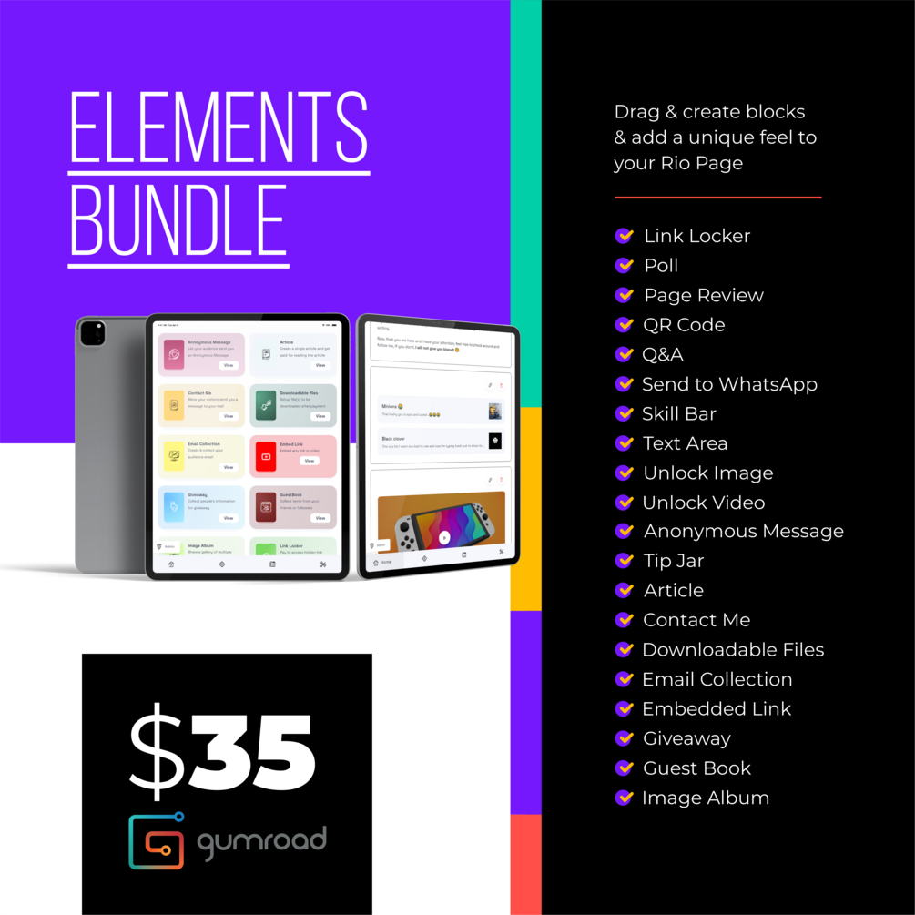 Let your users collect money, feedbacks, emails, anonymous notes and more. 20 different elements to give your users options & varieties to choose from. Give your users ability to make their pages more unique & personalized.
